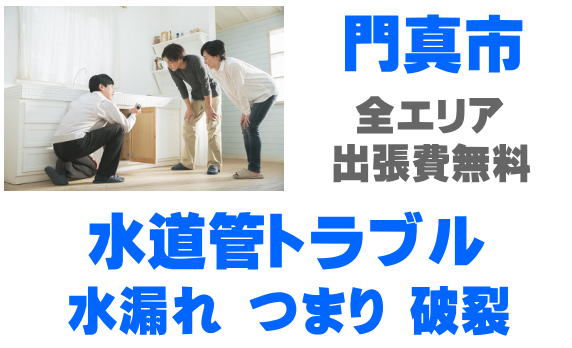 門真市でパイプの修理を行っています。水漏れ、つまり、水道管破裂、凍結、漏水などのお困りごとはご相談ください。